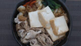鷹の爪とニンニクを炒め、豚バラと玉ねぎを投入。