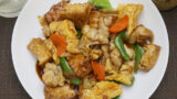 唐揚げの甘酢あんかけタルタルのせ